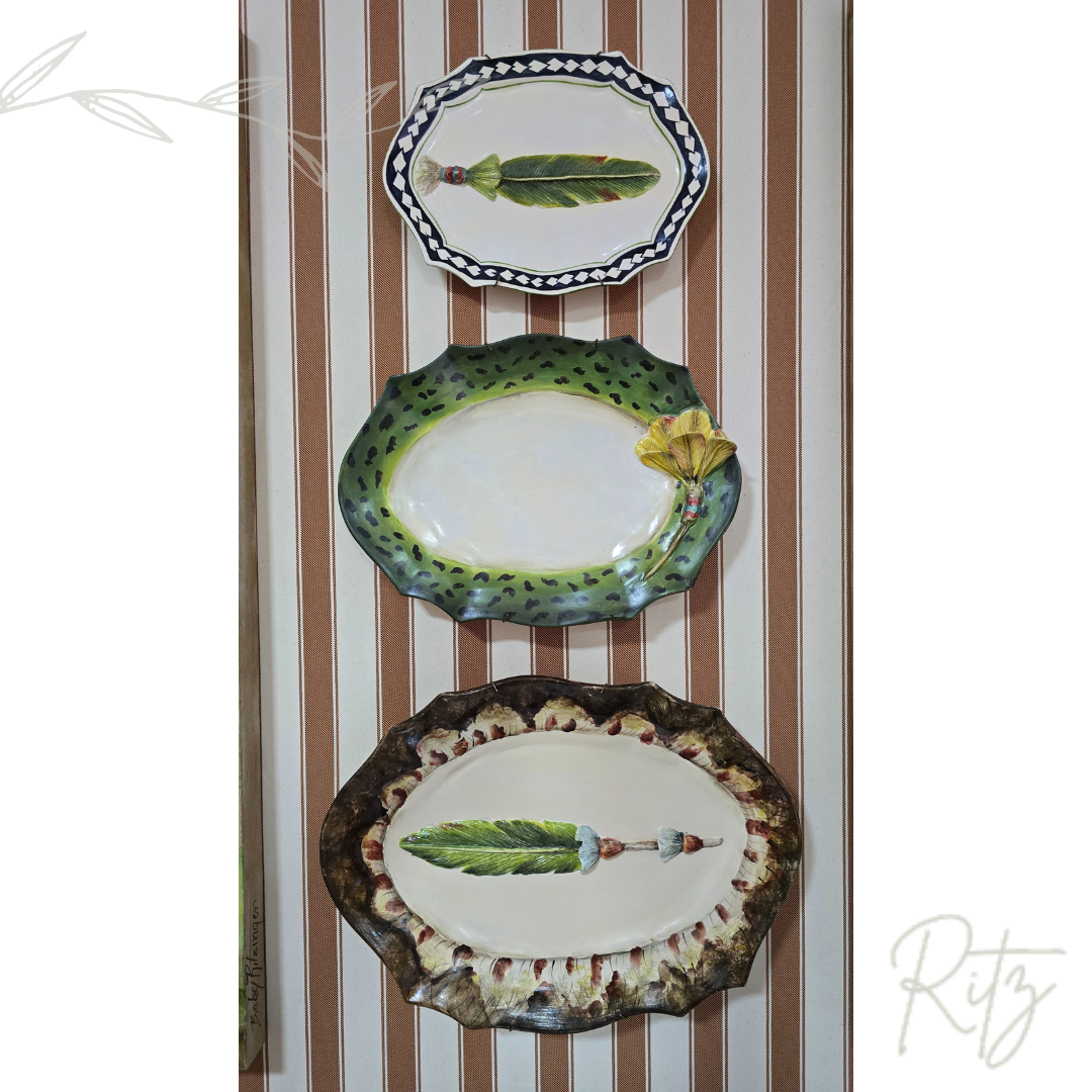 Descrição: bandeja Maria, tamanho pequena, de Penas, da coleção da Zanatta Casa. Belíssima peça para compor sua mesa, pode ser usada como travessa/tábua, também usada na decoração em suporte de mesa ou pendurado na parede.