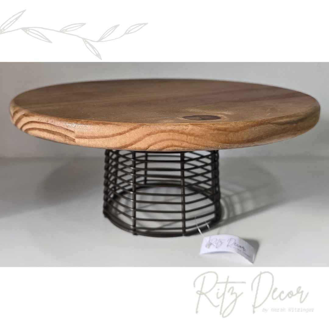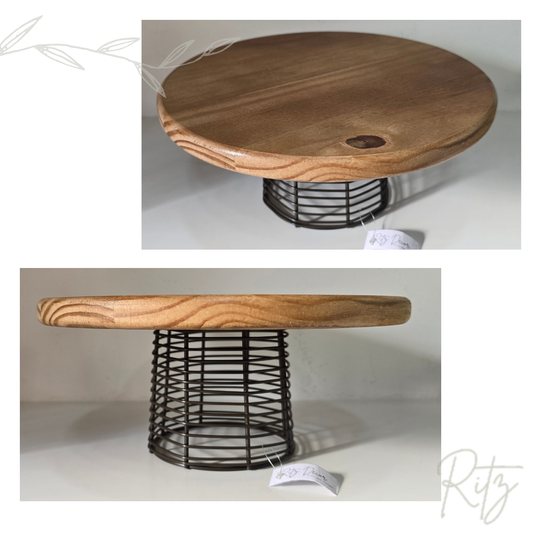 Descrição: boleira sem tampa ou suporte/prato para doces em madeira com pé em ferro.