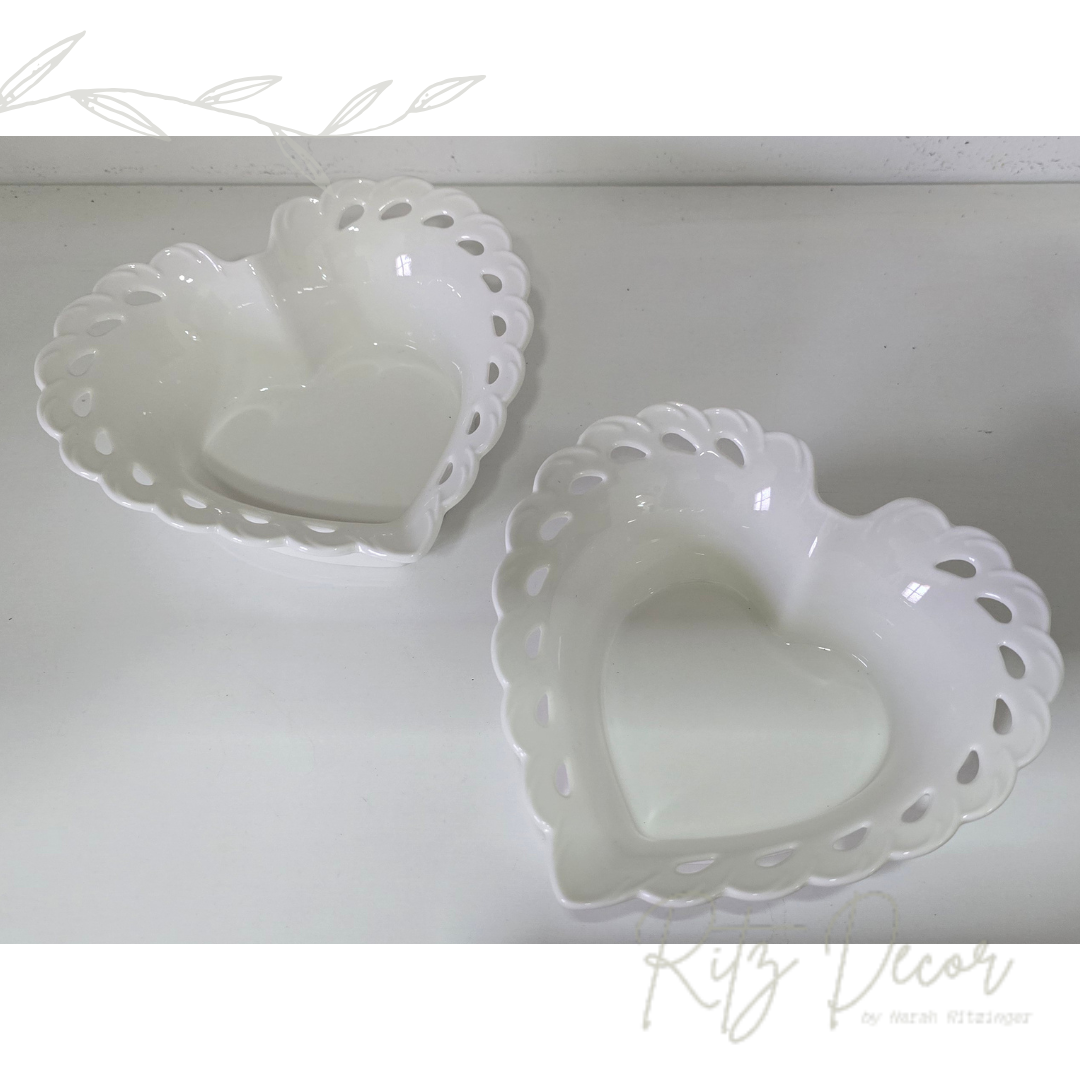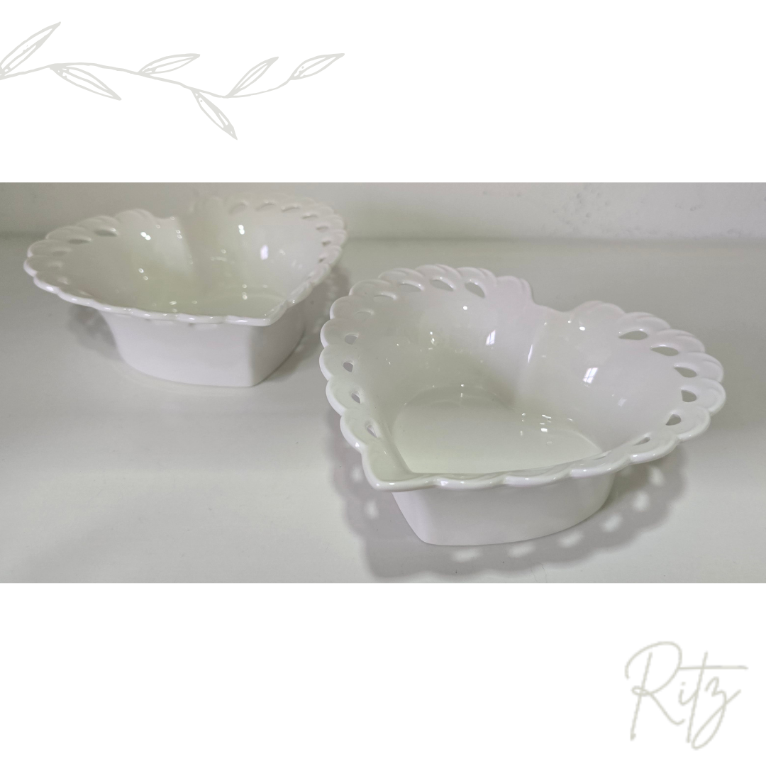 Descrição: par de bowls em formato de coração em porcelana.