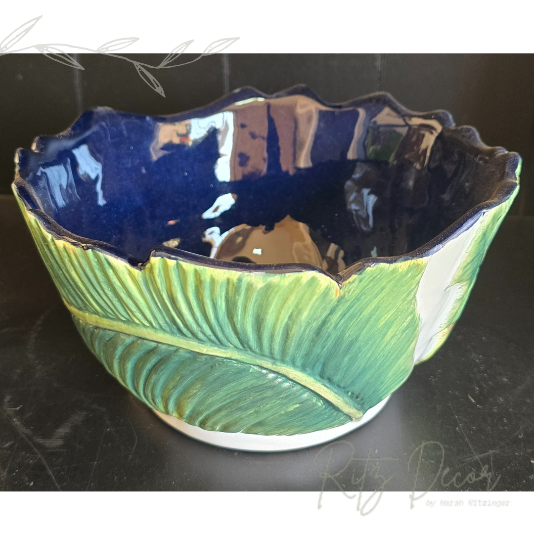 Descrição: bowl (centro de mesa pequeno) de Folha de Banana da Zanatta Casa, lembrando que todas as peças são confeccionadas e pintadas a mão.