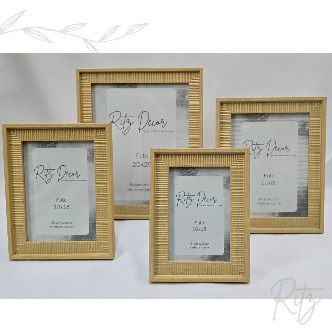 Descrição: porta retrato em madeira clara. Pode ser usado para foto na vertical ou horizontal e possui ganchos para usar na parede.