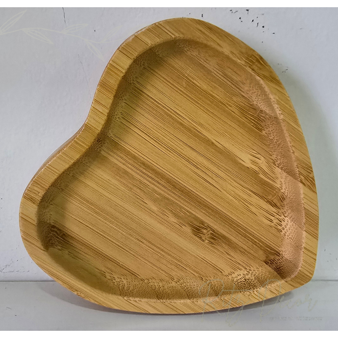 Descrição: pratinho de coração em madeira, pode ser usada para servir; em lavabos para apoio de aromatizadores ou até como pratinho para anéis.