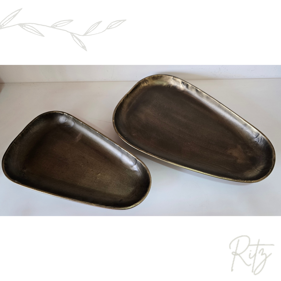 Descrição: prato decorativo em metal, pode ser usado como bandeja, centro de mesa entre outros. Belíssima peça para dar um toque especial a sua decoração.