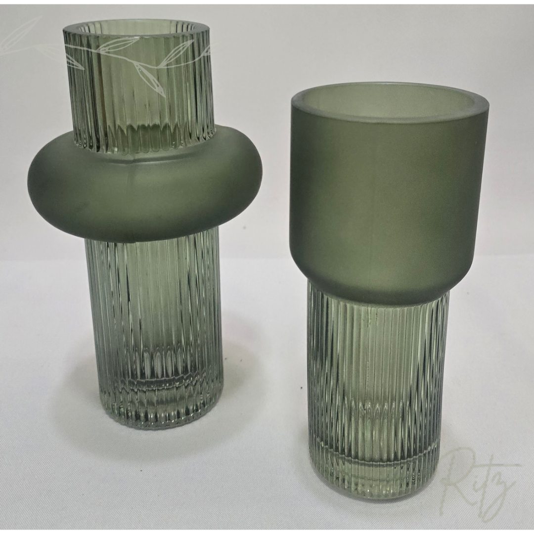 Descrição: vaso em vidro moderno, em tamanho pequeno na cor verde, canelado e fosco, pode ser usado em diversas composições de ambientes residenciais e comerciais, com ou sem plantas.